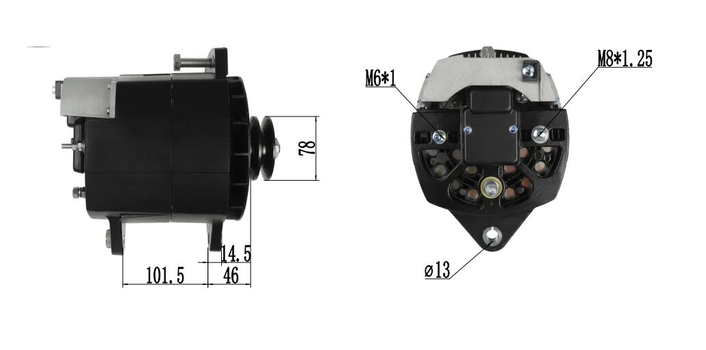 Apresenta uma polia de 2 ranhuras (2PK) e conexão padrão de 2 terminais (B plus e D plus) para instalação direta usando pontos de montagem originais e caminho da correia